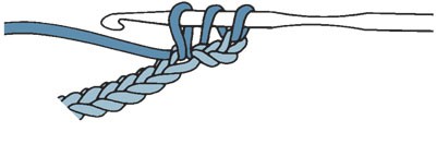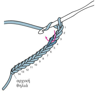 Όταν κάνουμε πολλά ποδαράκια σε μία αλυσίδα μετράμε κι τις 3 θηλιες που παραλείψαμε. Δηλαδή αυτές τις 3 θηλιες τις θεωρούμε σαν το πρώτο ποδαρακι της σειράς όπως πάρακάτω.